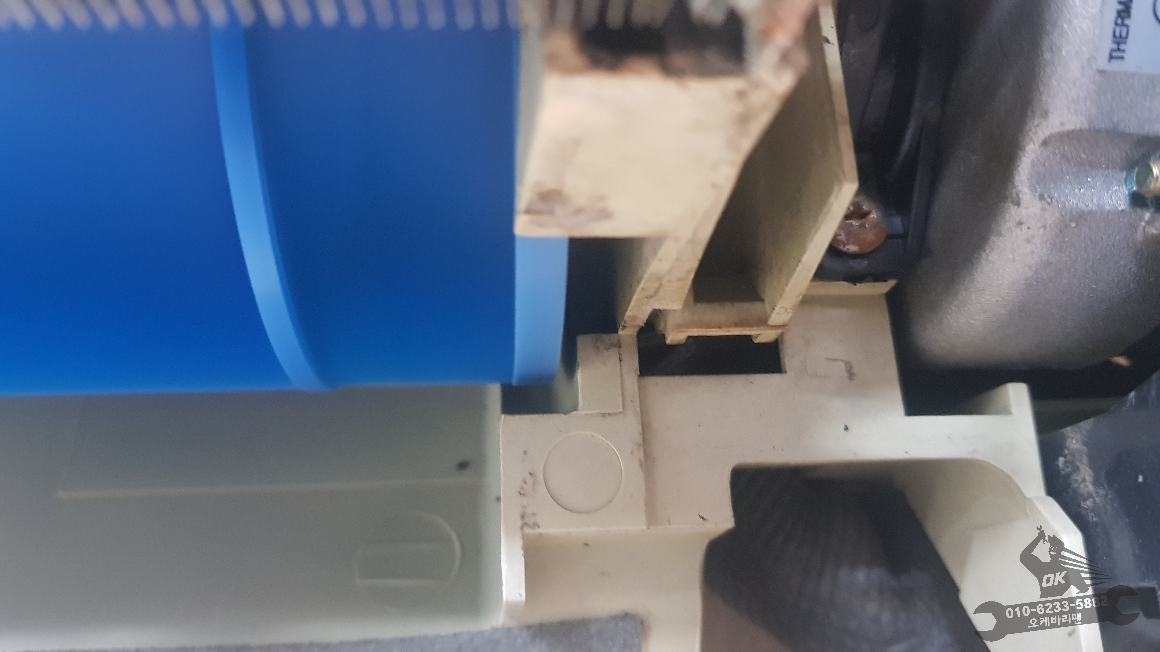 아래 이미지는 나중에 고정을 시킬 때 블로워팬과 벽걸이에어컨 본체사이를 적당히 유지하지 않으면 블로워 팬이 돌지 않거나 끼이익 끼이익 하는 소리를 내게 됩니다. 그래서 적당한 간격이 필요하구요. 실제로 에어컨을 풀어보시면 어떤 의미인지 바로 아실 수 있습니다.
