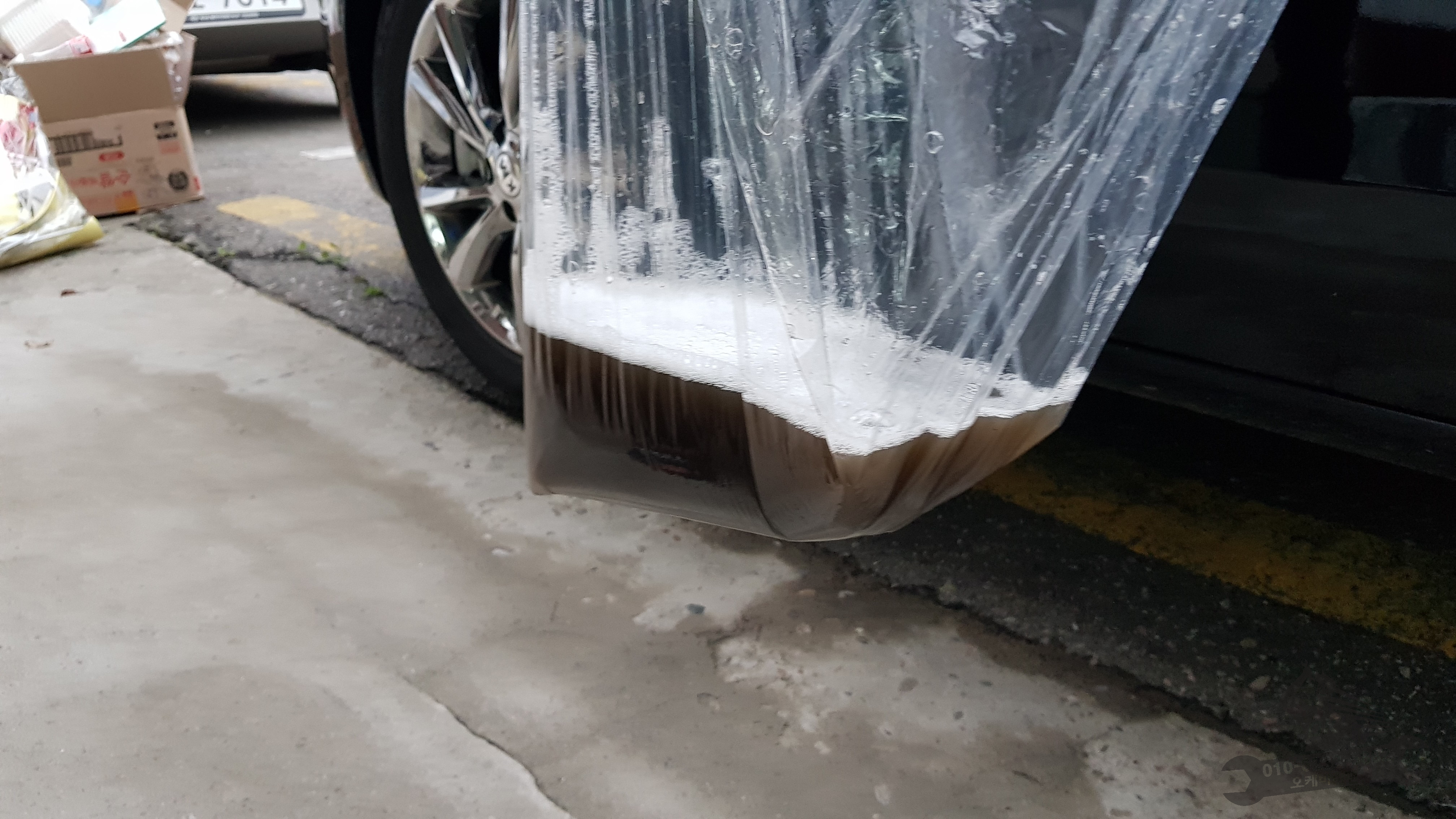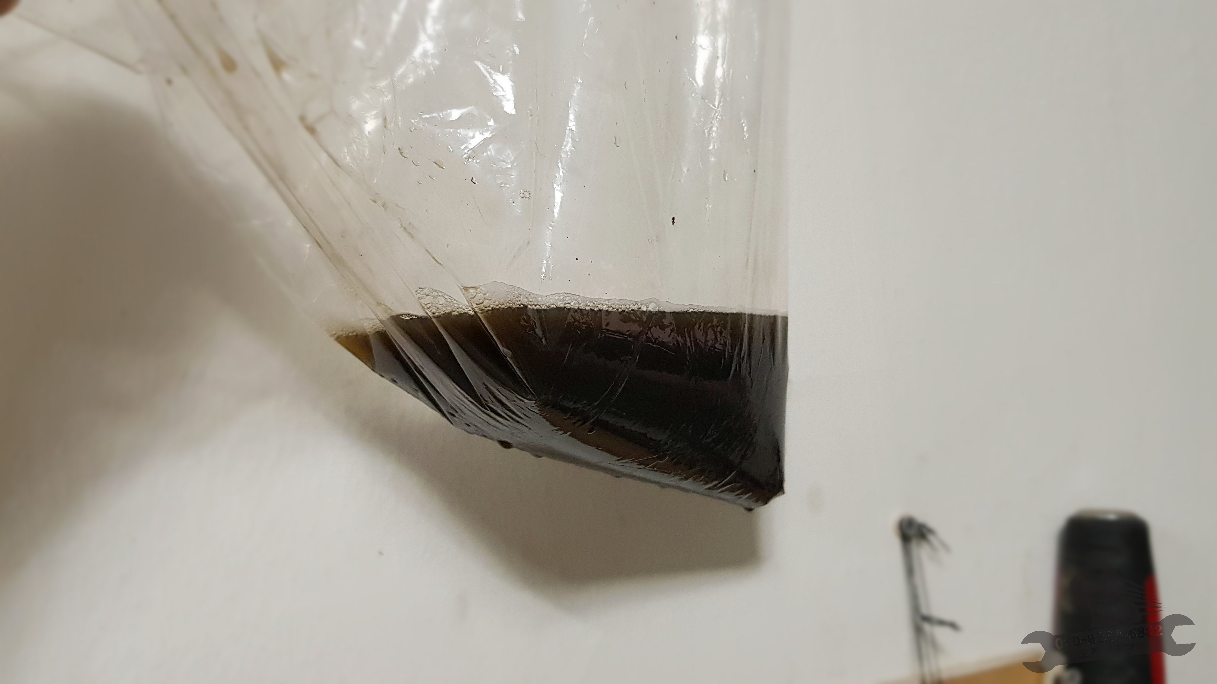 마지막으로 라디에이터에 물을 조금 흘려 제거된 먼지들을 흘려내려보냅니다. 이때 비닐로 보양을 하지 않으면 바닥이며 벽이며 난리가 납니다. 주의! 이 과정을 몇번 반복하면 처음에는 시커먼 물들이 점점 맑아지는 것을 볼 수 있어요~ 이때부터 기분이 다시 좋아집니다.