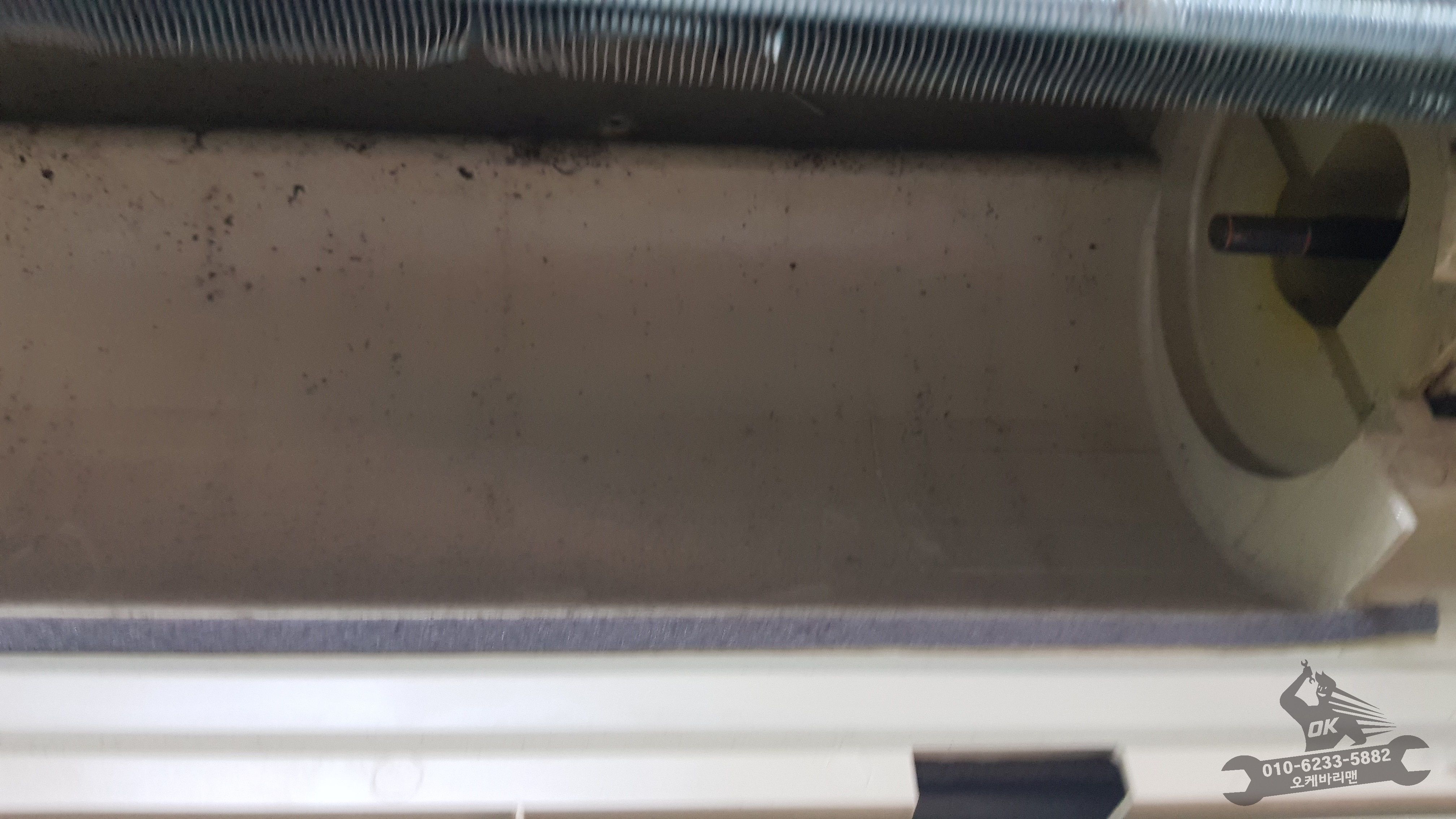 하지만 내부를 살펴보면 그동안 쌓인 먼지와 곰팡이 자국 들이 선명하게 보입니다. 사실 지난 여름에 벽걸이에어컨청소를 할 때는 다이소표 에어컨세정제만 들입다 뿌려댔지 딱히 뭘 어쩌진 못했습니다. 보여야 할 수 있는데 에어컨커버를 벗기지 않으니 잘 보이지도 않고...