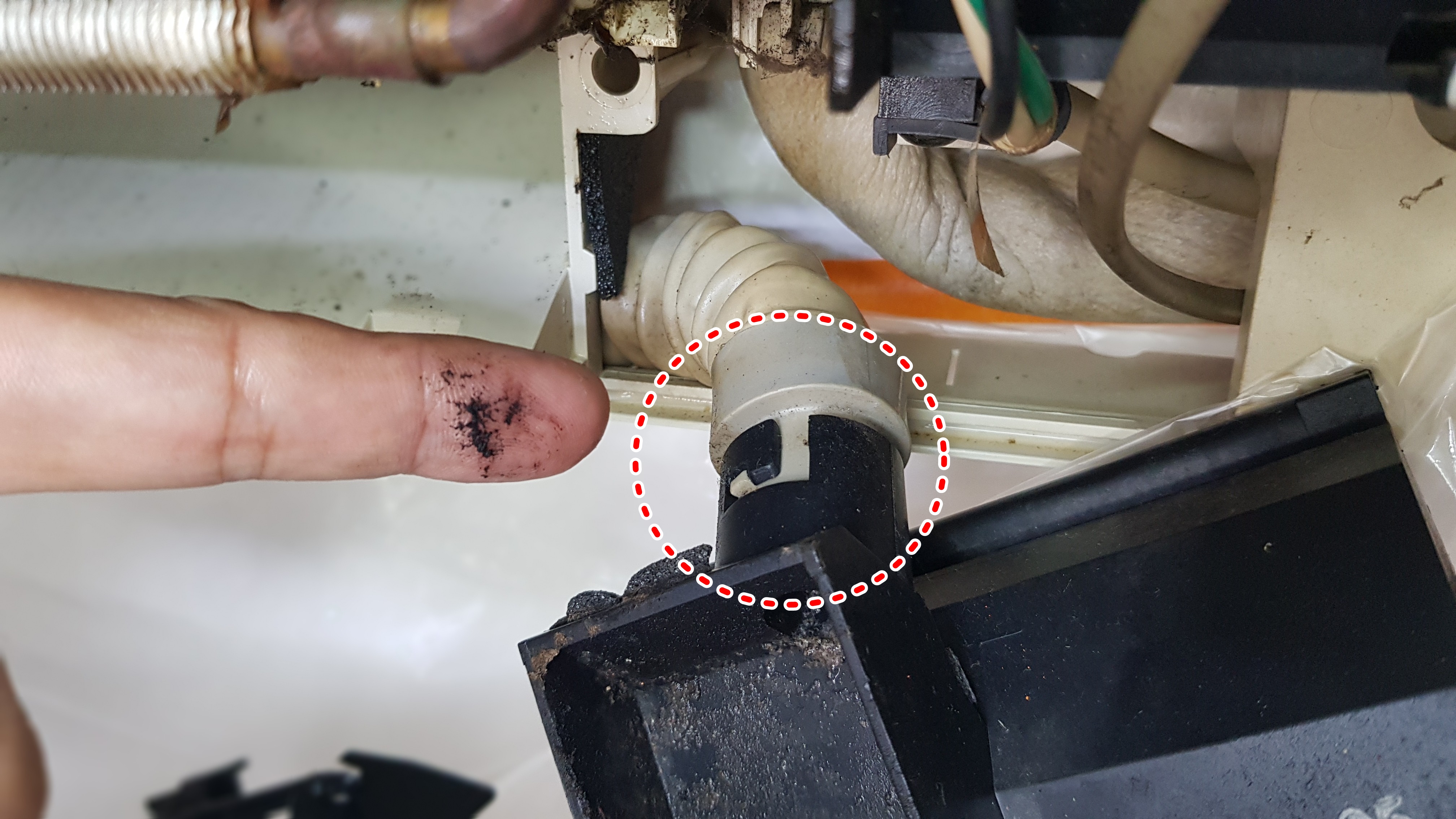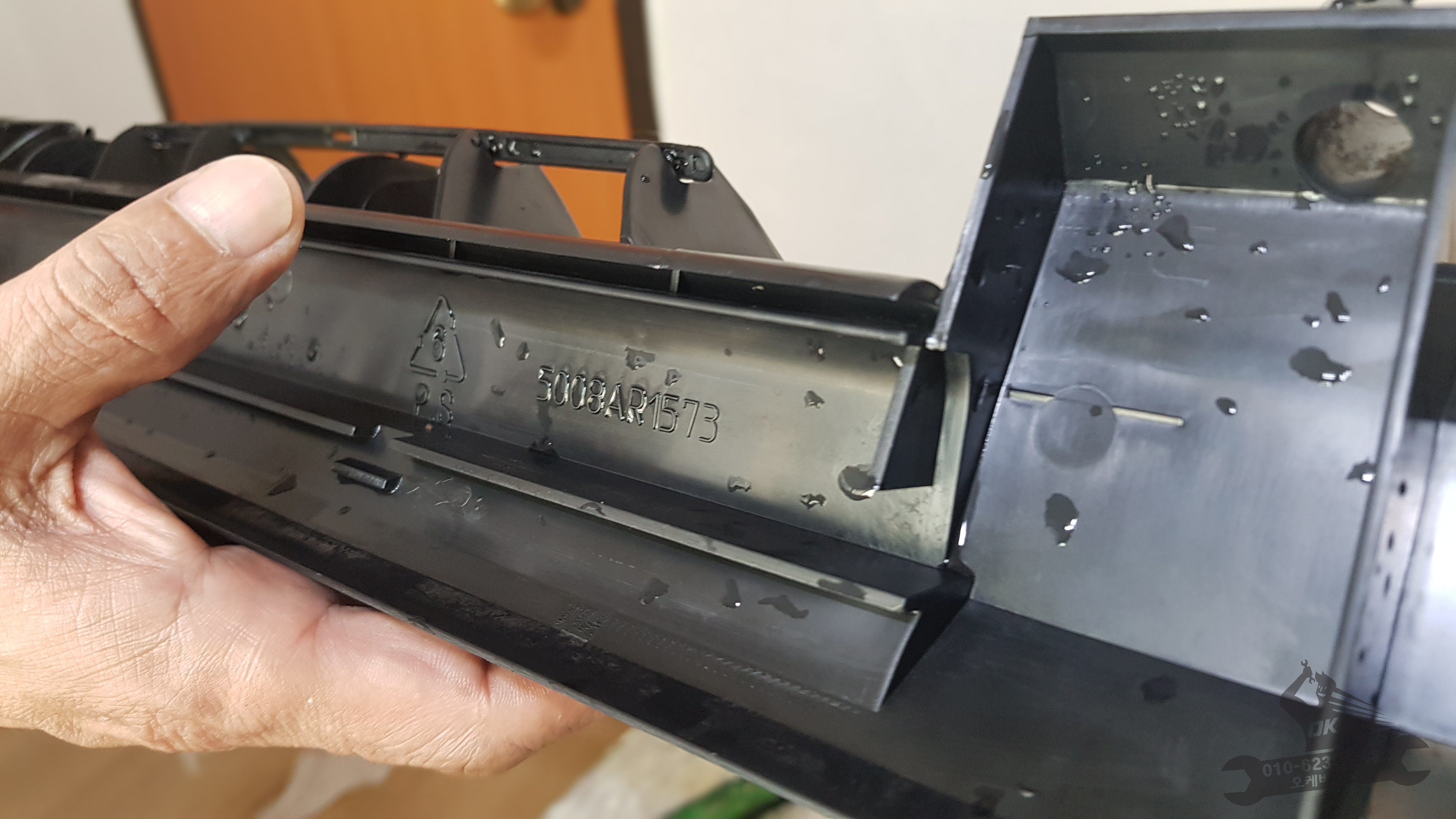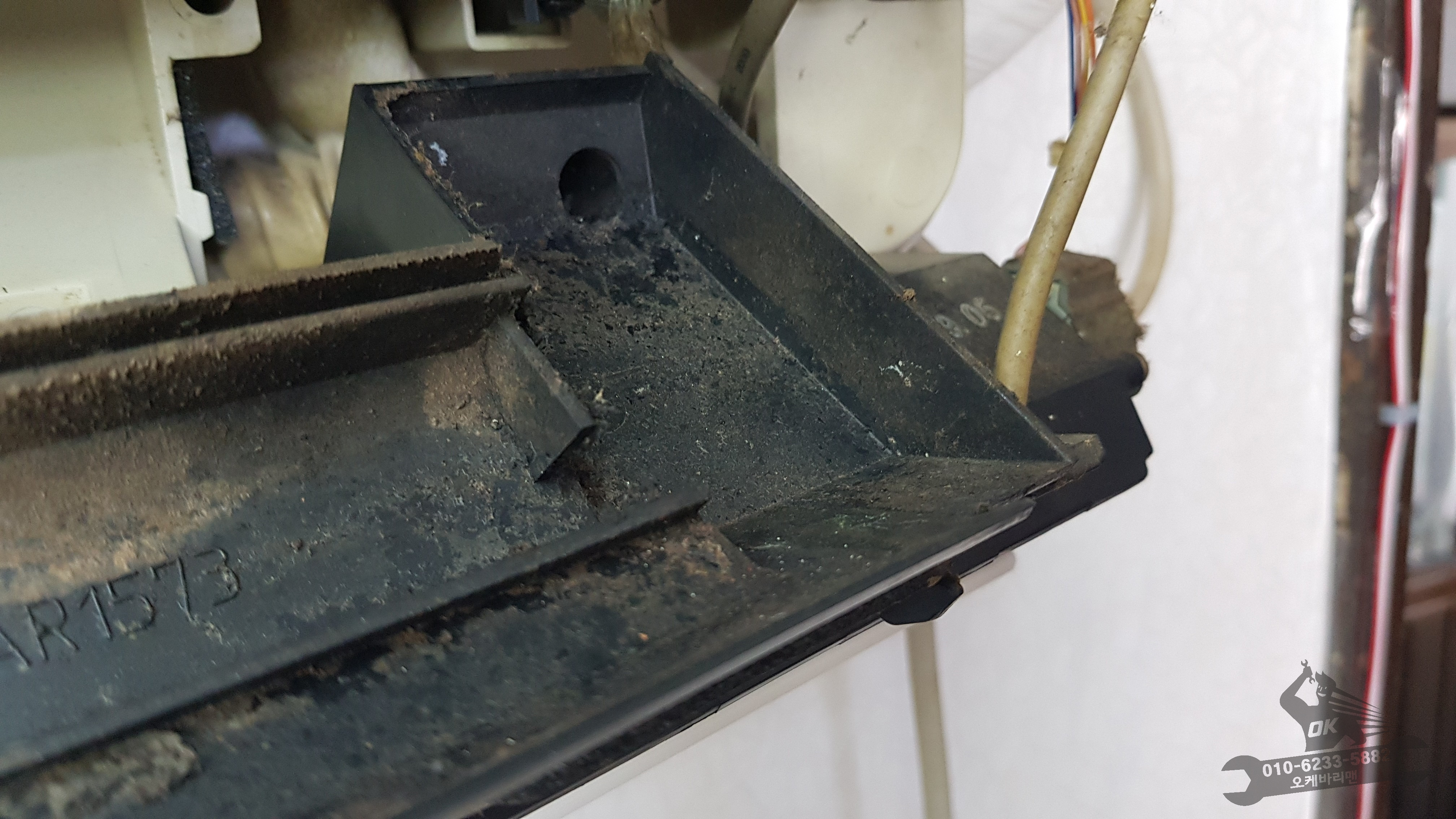 그동안 볼 수 없었던 물받침대입니다. 오른쪽 사진의 동그란 구멍으로 고여있던 물이 흘러나가는데요. 이쯤되면 에어컨에서 왜 악취가 났었는지 설명조차 필요없습니다. 곰팡이나 세균은 또 어땠을까요???