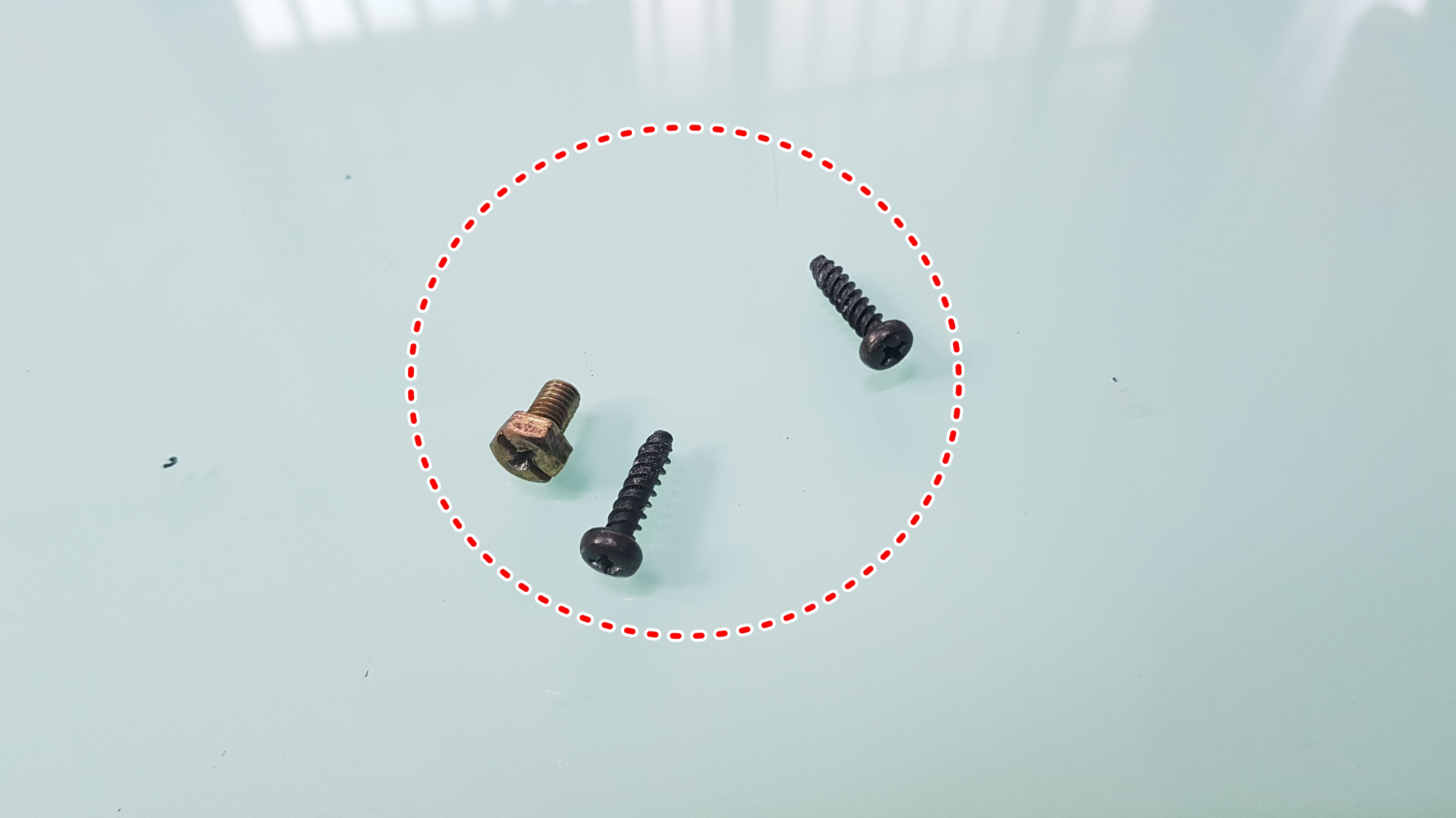 우측부터 길이가 조금 긴 나사는 에어컨커버를, 중간에 육각형나사는 송풍팬, 좌측에 짧고 굵은 나사는 송풍팬 축을 고정하던 나사입니다. 잘 모아두셔야 한다고 말씀드렸죠?