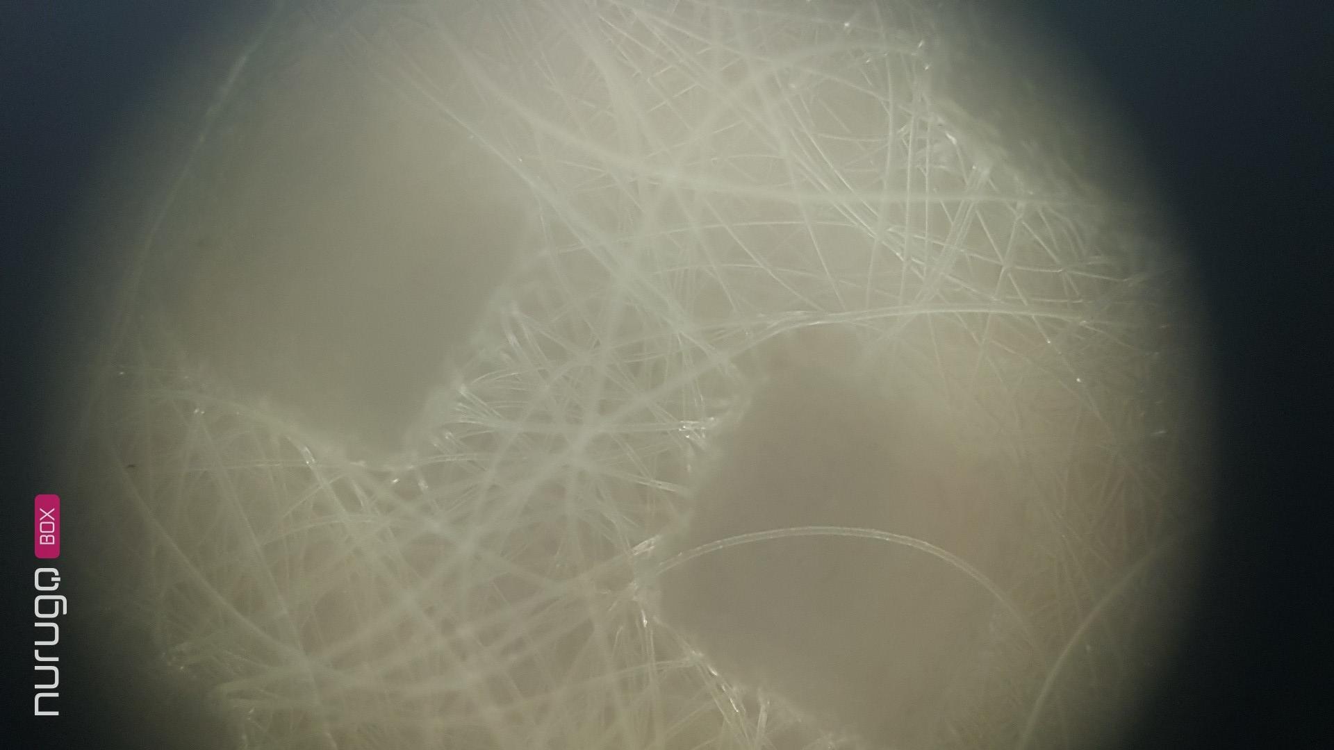 아래는 약 200배 정도 확대한 모습으로 첫번째 이미지가 MB필터, 그 아래 이미지가 한지필터입니다. 한지필터가 포집효율이 높으면서도 호흡이 편한 이유를 조금더 명확한 차이를 보여줍니다.