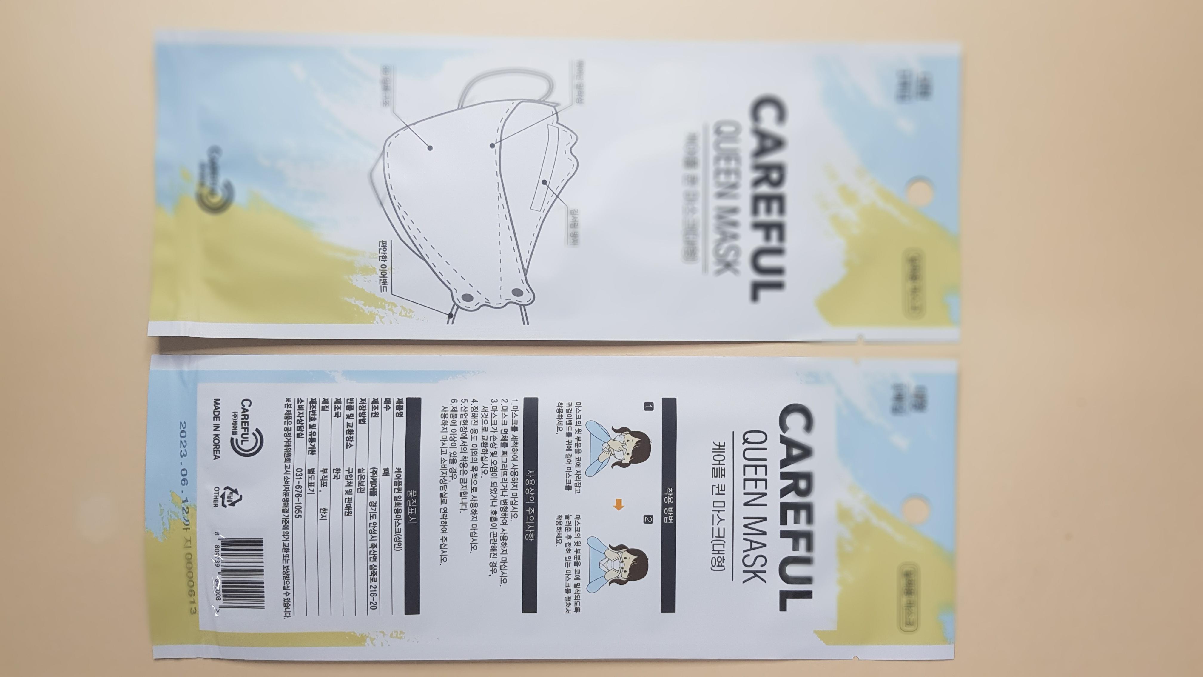 현재 케어플퀸마스크는 KF인증이 없어 공산품으로 소개를 해드리고 있지만 조만간 KF인증이 완료되면 제대로 된 제품 소개를 해드릴 수 있을 것으로 기대합니다. 멋진 주말, 건강한 주말 보내세요~